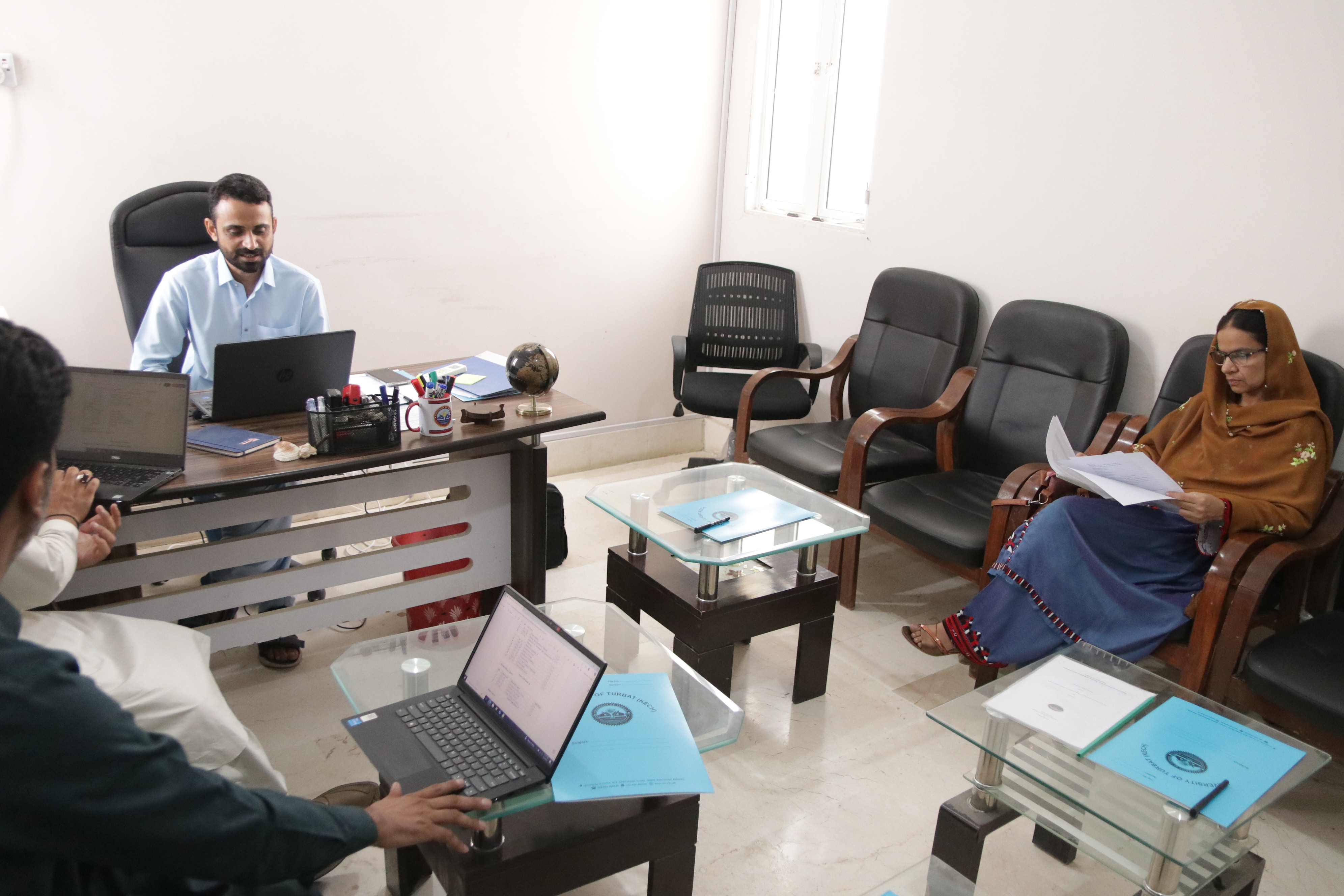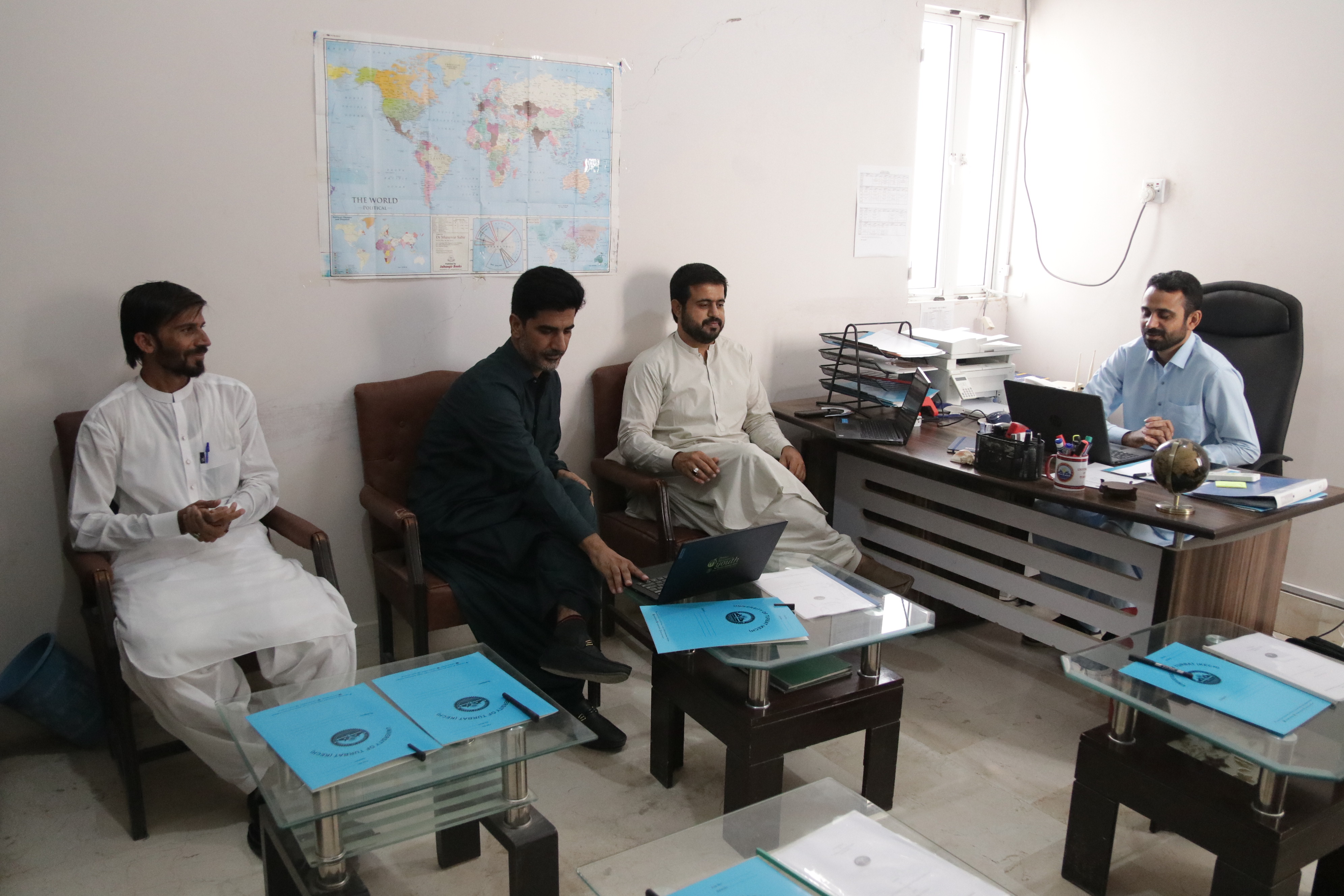 Chaired by Dr. Mohammad Yaqoob, Head of Department, the meeting was attended by internal members, including Dr. Riaz Ahmed, Director, Quality Enhancement Cell, and faculty members Mr. Ameer Bakhsh and Mr. Meer Jan. External members included Ms. Faiza Aziz, Lecturer at Government Girls Degree College Turbat, and Mr. Waseem Raja from Atta Shad Degree College Turbat, while Dr. Imadullah from the Lasbela University of Agriculture, Water and Marine Sciences participated virtually.