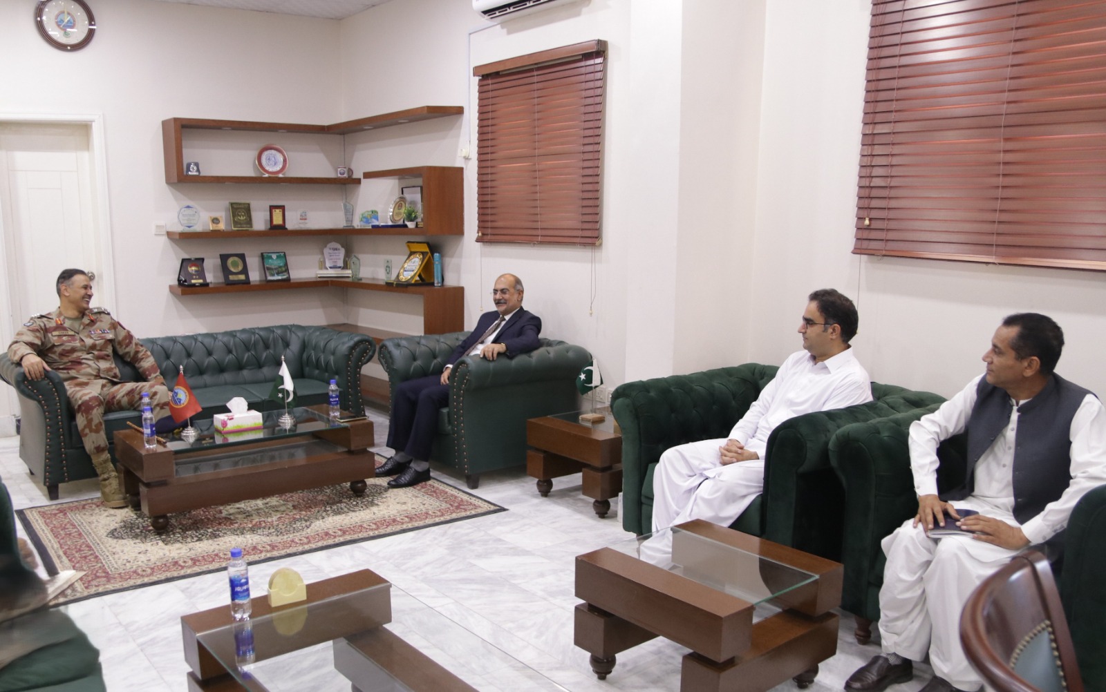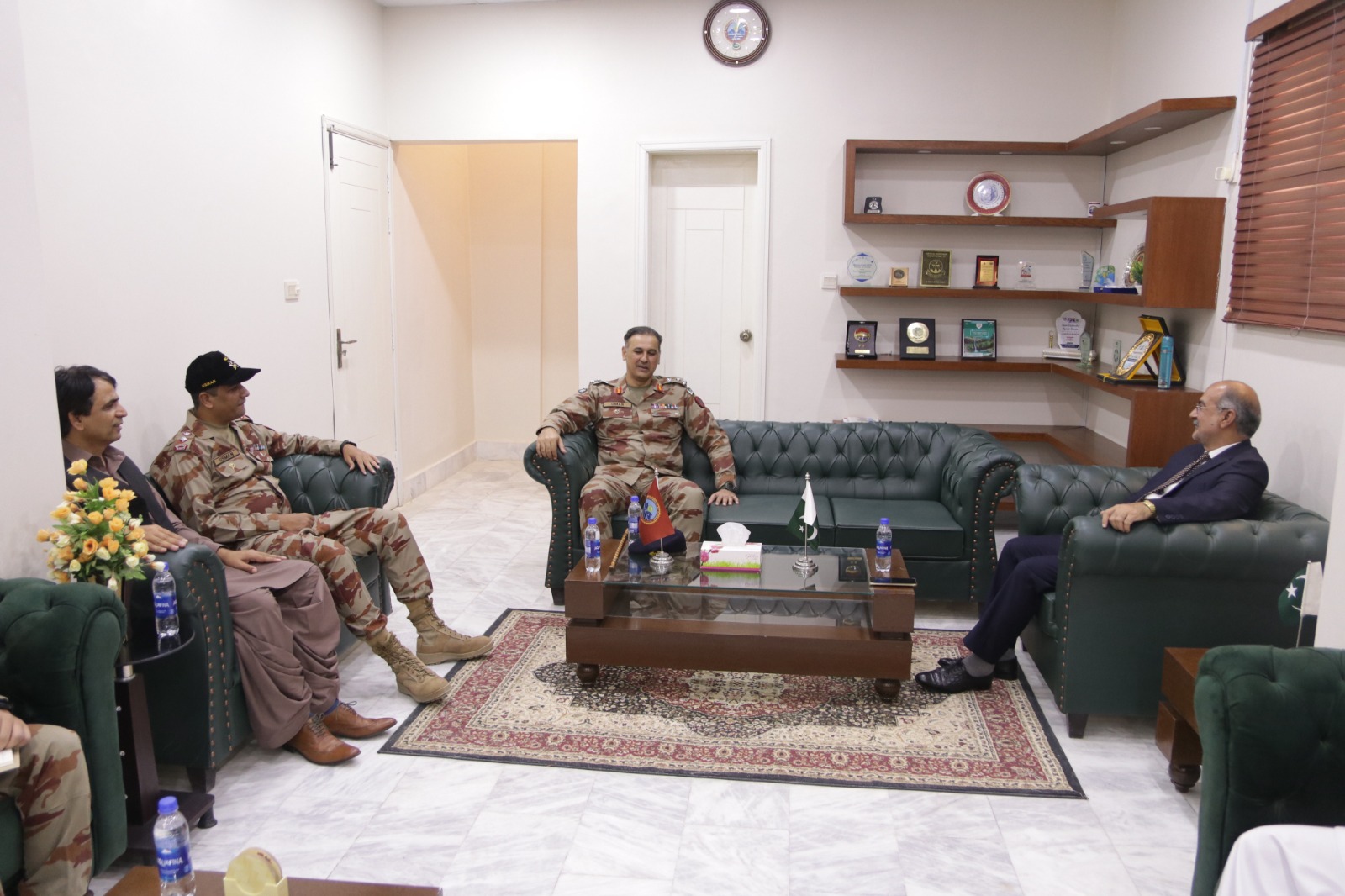 Commandant Mekran Scouts, Brigadier Omer Tahir, visited the University of Turbat (UoT) on October 7, 2025, and met with the Vice Chancellor, Prof. Dr. Gul Hasan, in his office. The Registrar, Ganguzar Baloch; Director Public Relations, Ijaz Ahmed; and Project Coordinator, Dr. Kamal Baloch, were also present on the occasion.