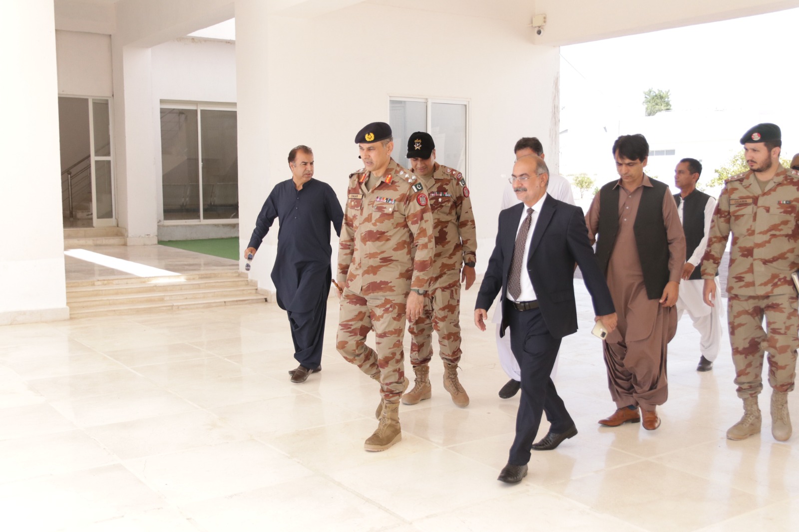 Brigadier Omer Tahir visited various sections of the campus, including the Senate Hall, newly completed, and the under-construction components of Phase-II of the university project, including faculty offices and academic blocks. Project Coordinator Dr. Kamal Baloch briefed the Commandant on the project’s quality standards, financial aspects, and the pace of ongoing civil work.