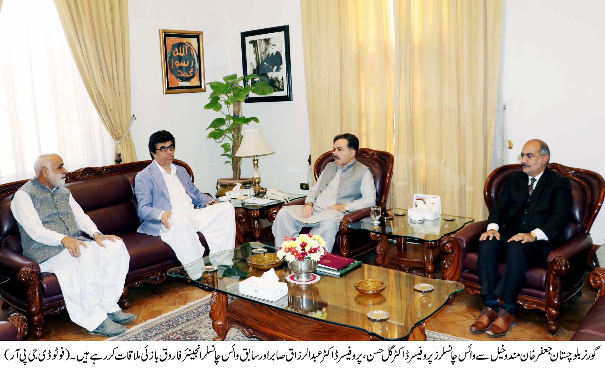گورنر بلوچستان سے یونیورسٹی آف تربت کے وائس چانسلر کی ملاقات، کٹھن حالات اور محدود وسائل کے باوجود تربت یونیورسٹی کا عروج وائس چانسلر پروفیسر ڈاکٹر گل حسن اور ان کی پرعزم ٹیم کی دور اندیش قیادت کا نتیجہ ہے. گورنرجعفرخان مندوخیل