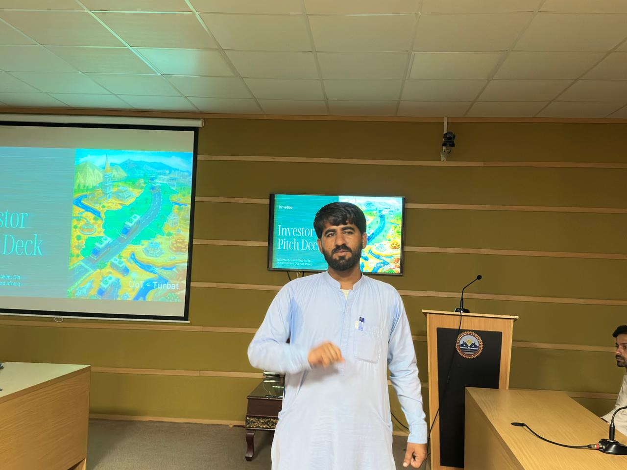 Among the presented business plans, Team Sar-Sabz Production proposed the development of animated cartoons in the Balochi language, Team Drive Boo introduced an app designed to reduce transportation and delivery costs, and Team Trading presented an app connecting wholesalers and retailers in Turbat city. Mr. Feroz, a BS 8th-semester student and leader of Sar-Sabz Production, secured the first position in the competition.