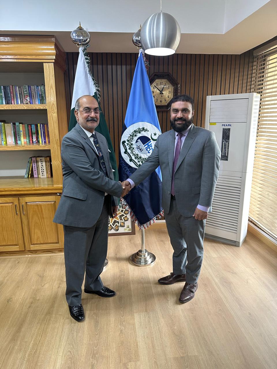 The Vice Chancellor of the University of Turbat (UoT), Prof. Dr. Gul Hasan, met with the newly appointed Executive Director (ED) of the Higher Education Commission (HEC) of Pakistan, Prof. Dr. Zia-ul-Haq, at his office in Islamabad on December 9, 2025. The Vice Chancellor congratulated Dr. Zia-ul-Haq on assuming his new role and conveyed best wishes for his tenure.