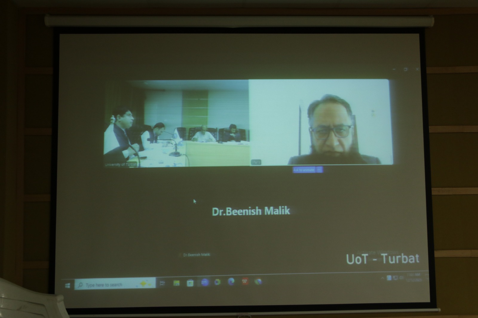 The meeting was attended by Prof. Dr. Beenish Malik from IMS, University of Balochistan, Dr. Irfan Siddique, Head of the Department of Management & Entrepreneurship, University of Central Punjab, Dr. Adeel Ahmed, Dean, Faculty of Business and Economics, UoT, Dr. Wasim Barkat, Director Graduate Studies, UoT, Dr. Riaz Ahmed Director Quality Enhancement Cell, UoT, senior faculty members of UoT, Dr. Muhammad Tahir Badini, Mr. Badal Khan, Ms. Mahjabeen Faqir, and Mr. Muhammad Yousuf, lecturer Govt. Degree College Turbat.