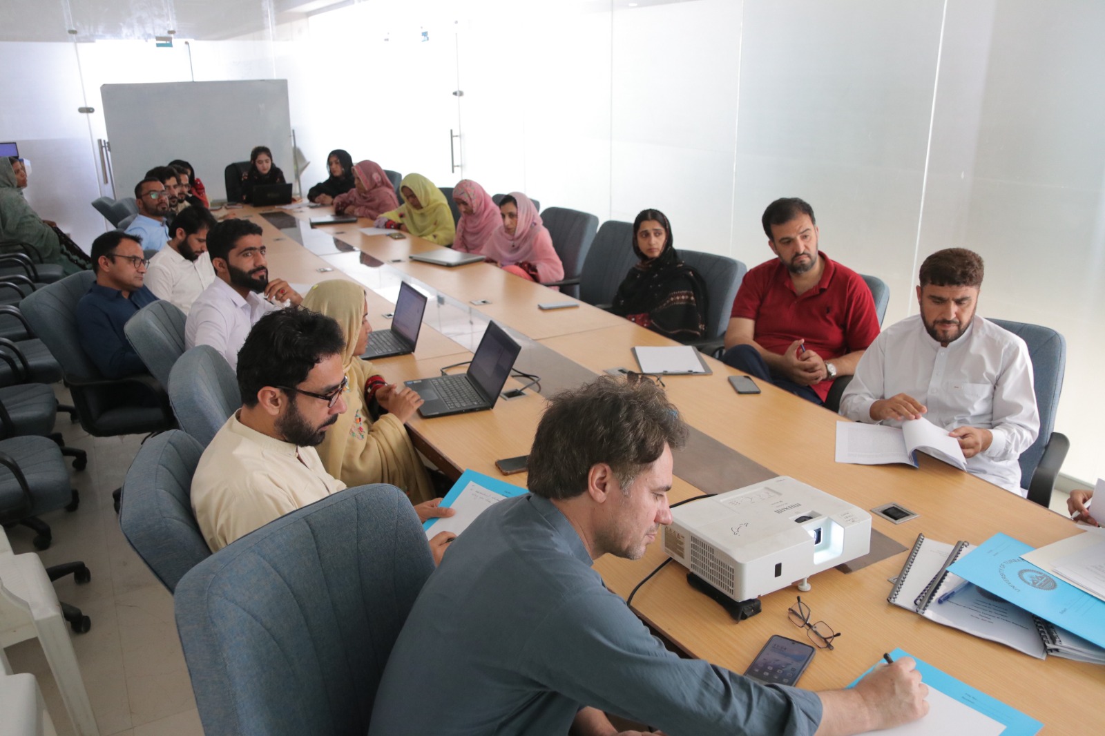 The meeting was chaired by Dr. Naeem Ullah, Dean, Faculty of Science, Engineering and IT, Dr. and attended by Dr. Waseem Barkat, Director Graduate Studies, and faculty members Dr. Haneef ur Rehman, Dr. Roohullah, and Dr. Zafar Ali, Program Coordinator.