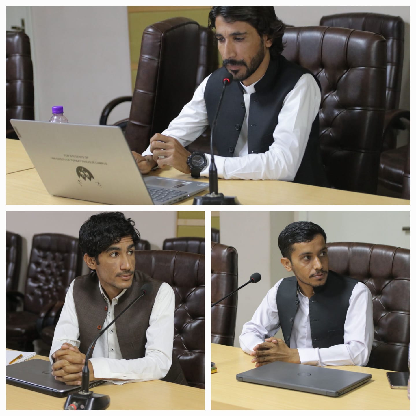 The Directorate of Graduate Studies at the University of Turbat (UoT) conducted the viva voce examinations and thesis defense sessions of MPhil scholars from the Departments of Natural and Basic Sciences, English, and Chemistry from 11 to 13 February 2026. The Biochemistry and Chemistry sessions were chaired by the Dean of the Faculty of Business and Economics, while the English Literature session was chaired by the Dean of the Faculty of Sciences, Engineering, and IT.