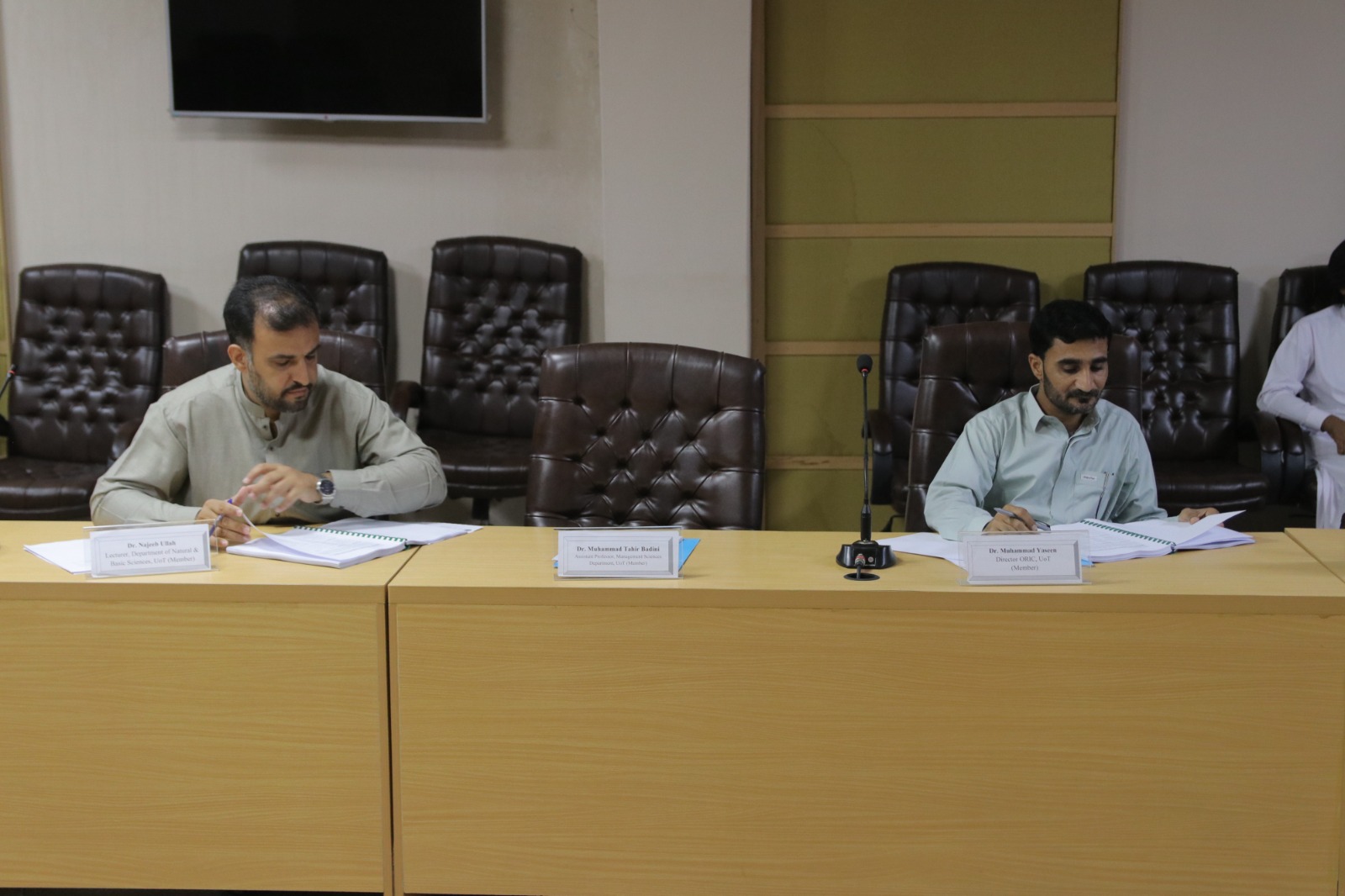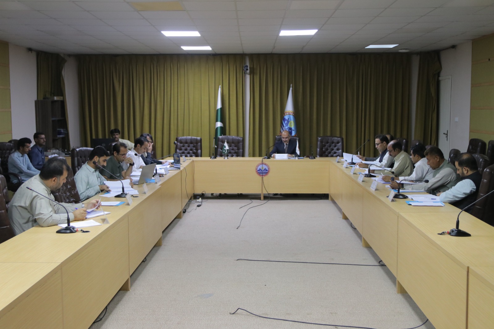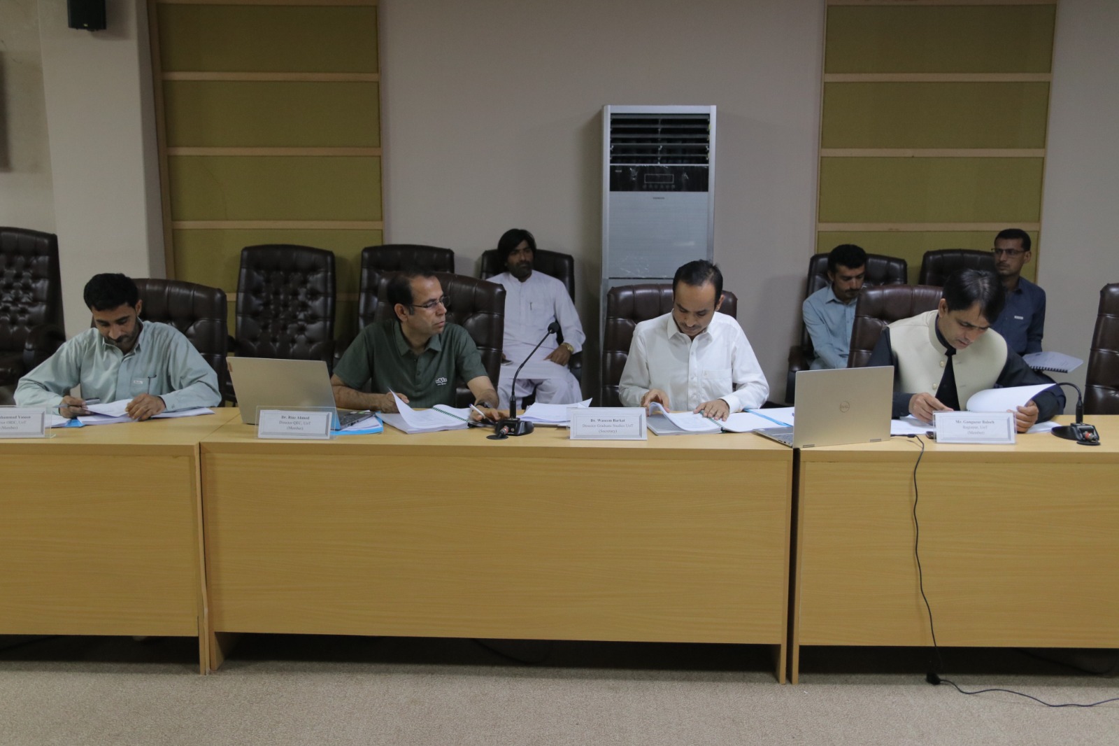 The meeting was attended by Prof. Dr. Abdul Saboor (TI), Dean, Faculty of Literature and Languages; Dr. Muhammad Tahir Hakeem, Dean, Faculty of Social Sciences, Dr. Muzaffir Hussain, Dean, Faculty of Law, Dean, Faculty of Business and Economics, Registrar Ganguzar Baloch, Dr. Waseem Barkat, Director, Graduate Studies Office, Dr. Riaz Ahmed, Director, Quality Enhancement Cell, Dr. Muhammad Yaseen, Director, Office of Research, Innovation and Commercialization, the Principal of Government Shaheed Ayoub Buledi College, Turbat, along with senior faculty members.
