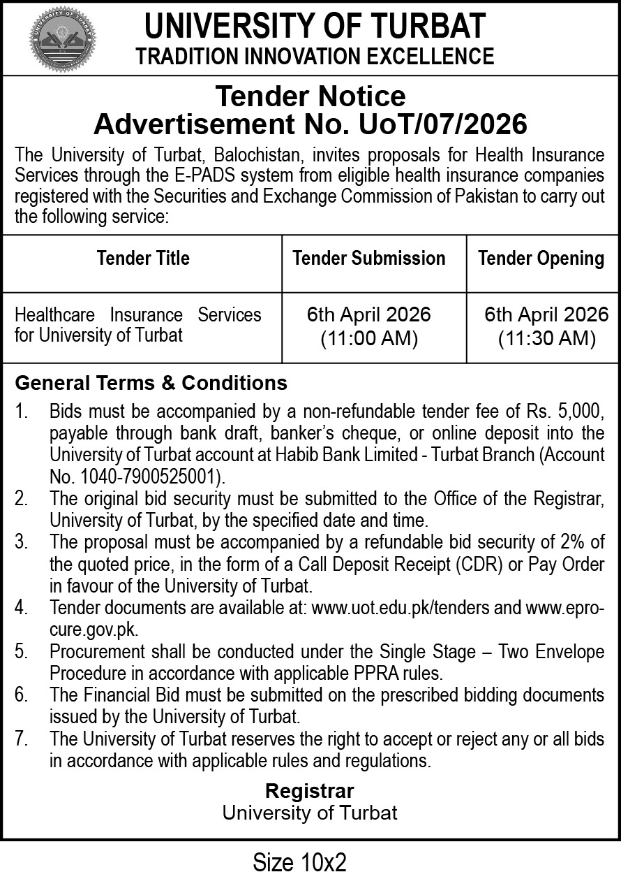 ← Read Previous Go To Home Read Next → Healthcare Insurance Services for University of Turbat 19 Mar 2026 ← Read Previous Go To Home Read Next →