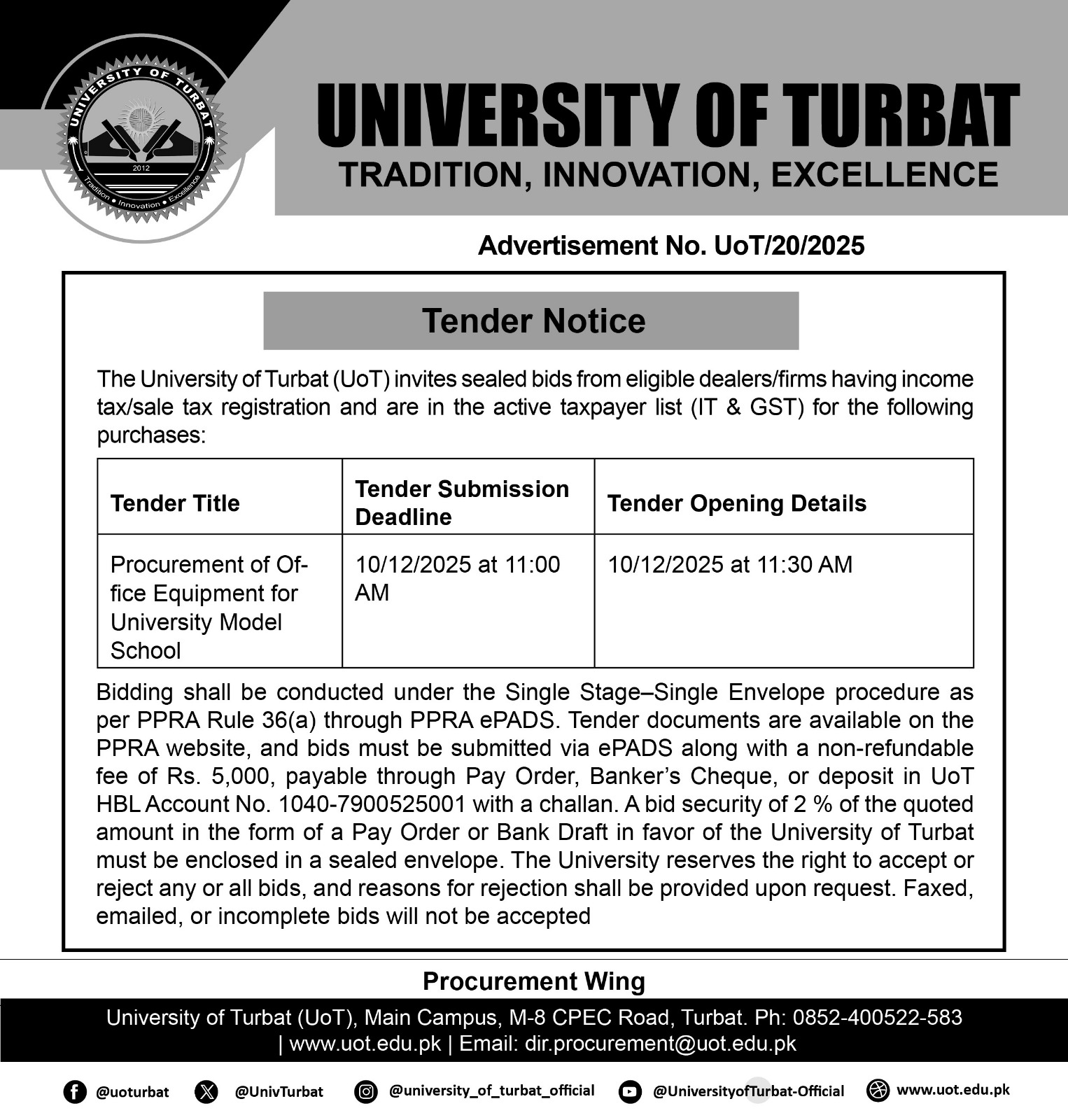 ← Read Previous Go To Home Read Next → Procurement of Office Equipment for University Model School 22 Nov 2025 ← Read Previous Go To Home Read Next →