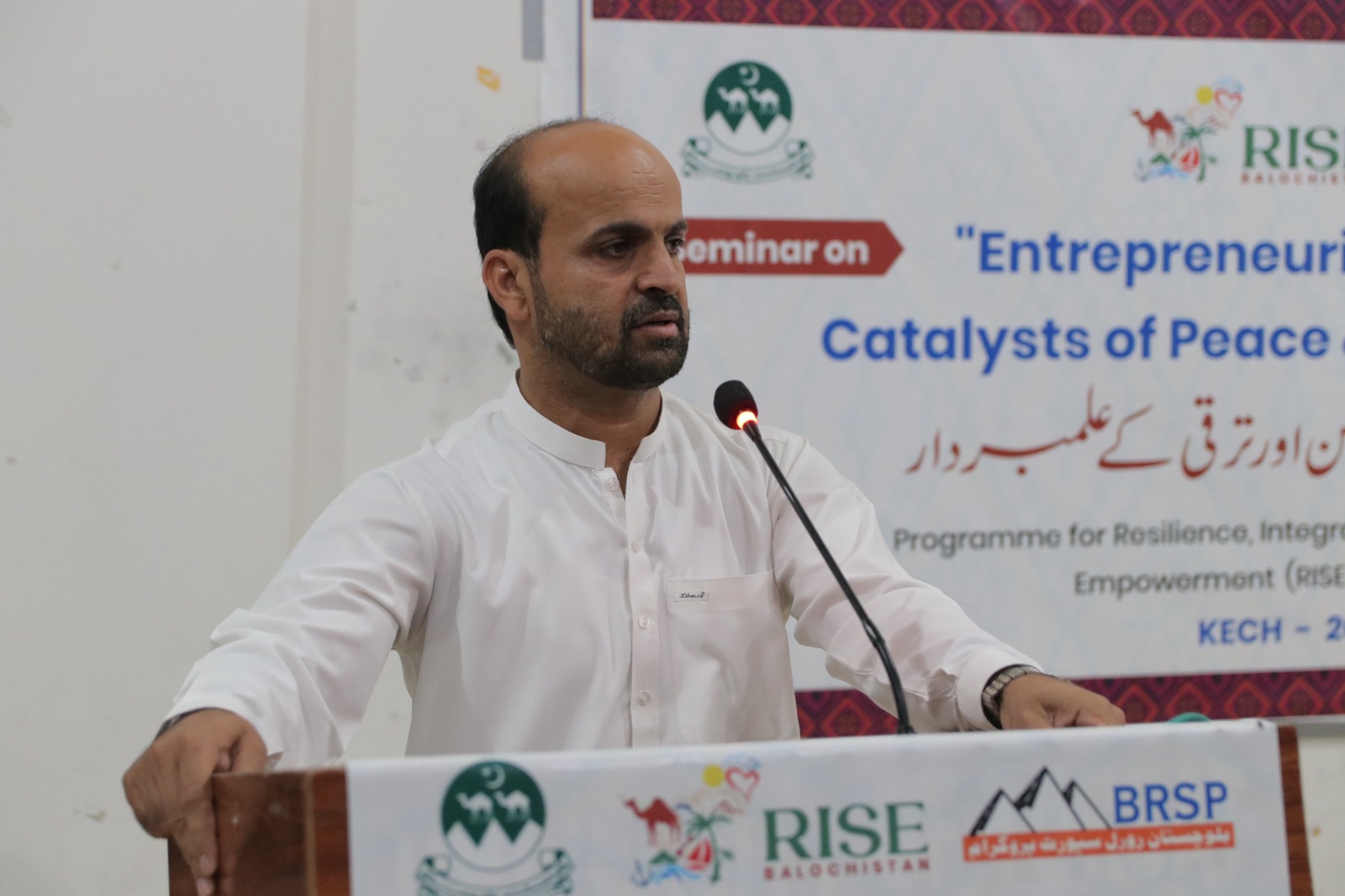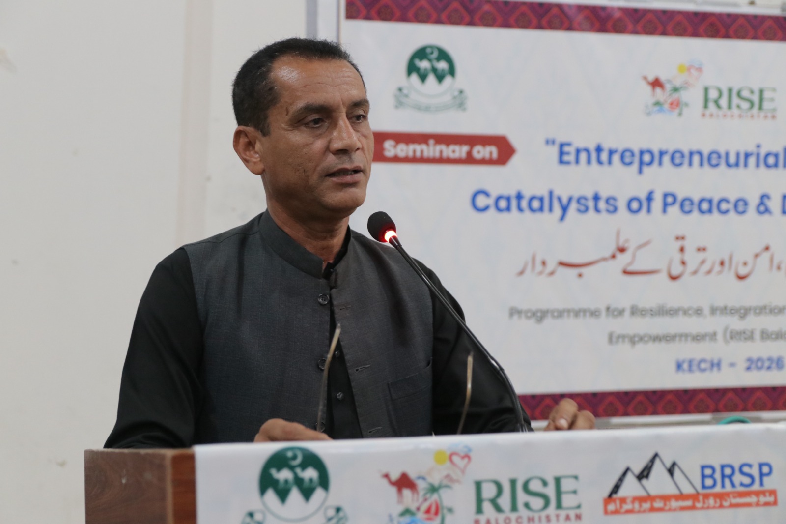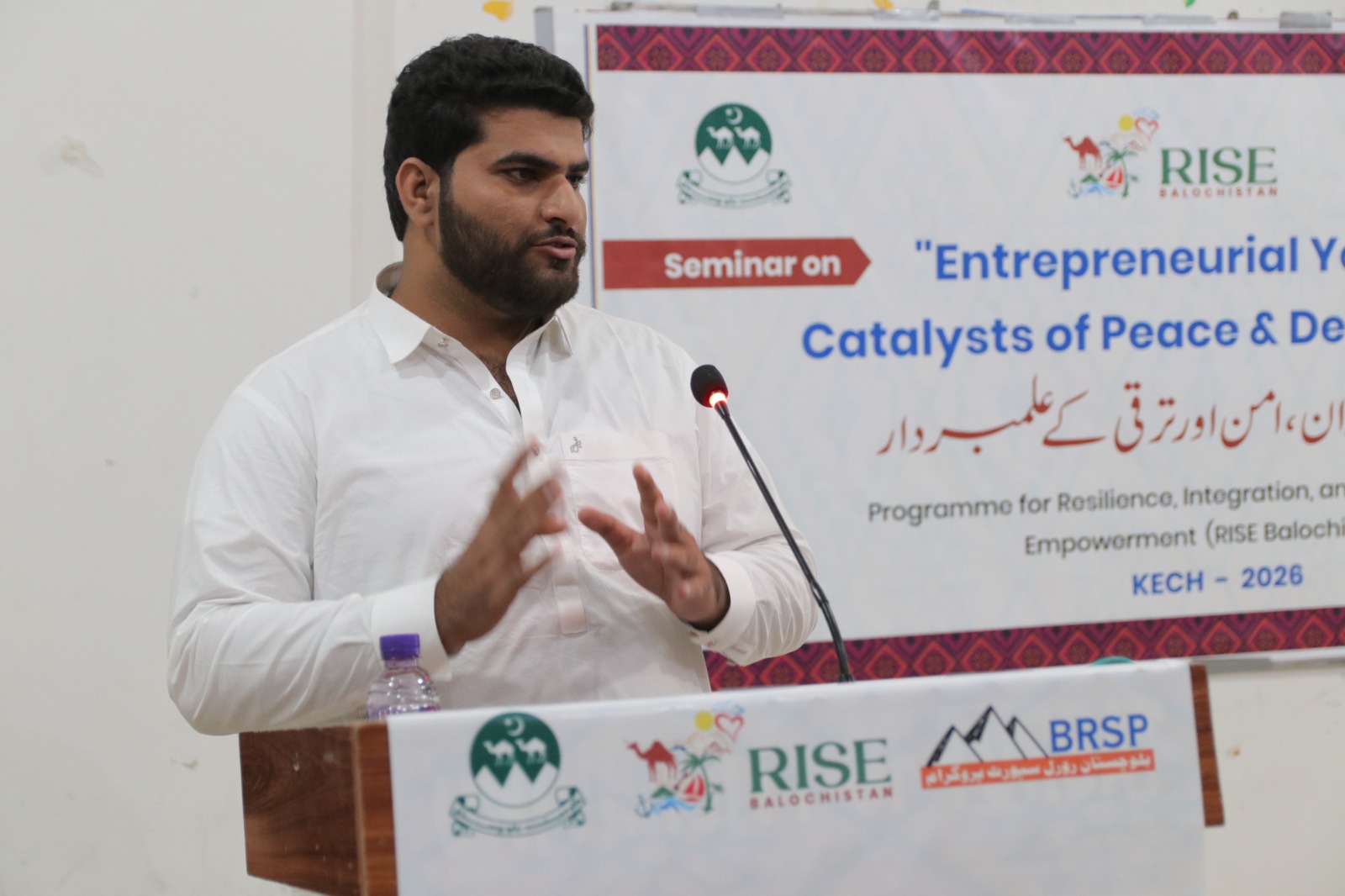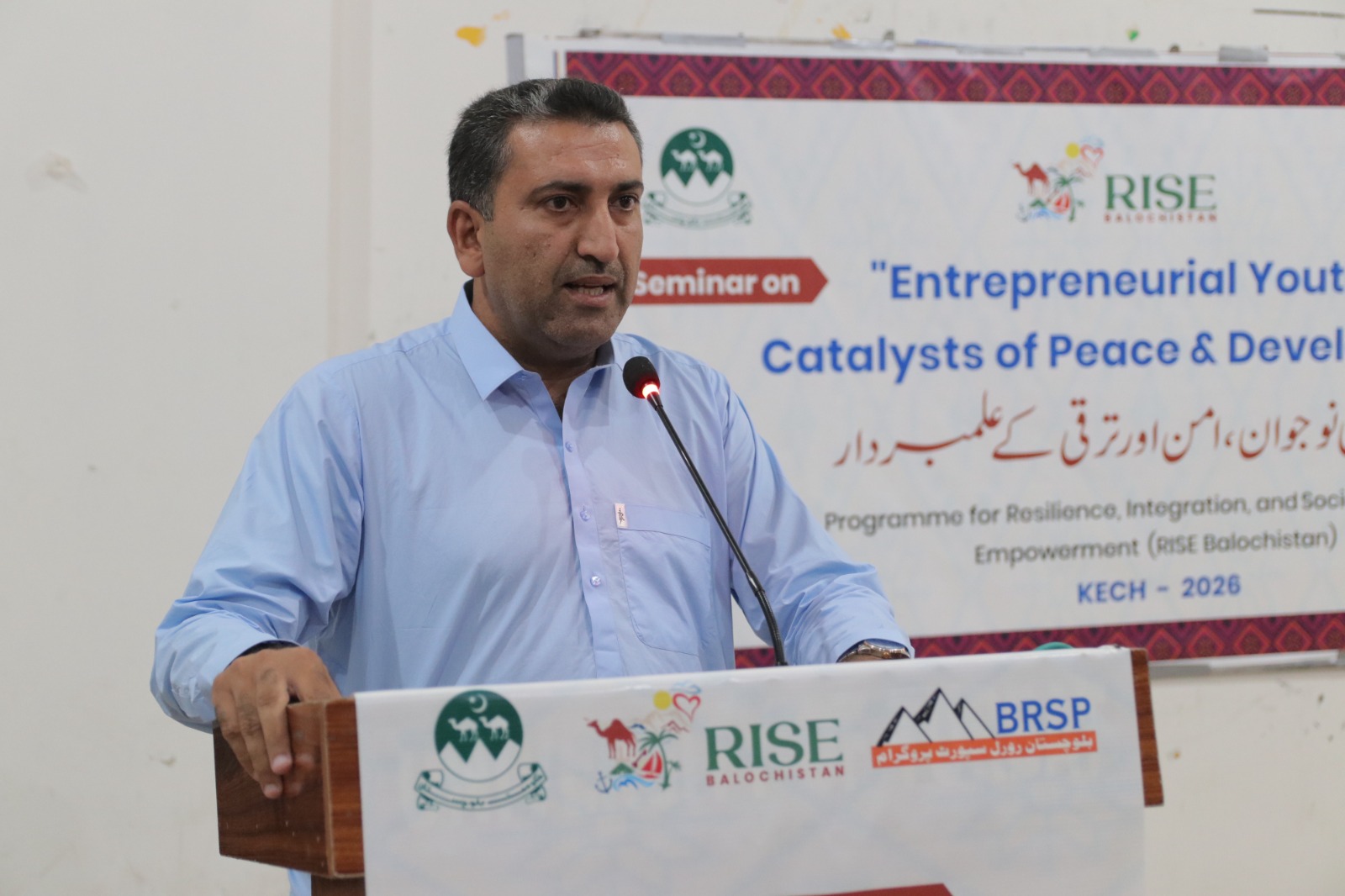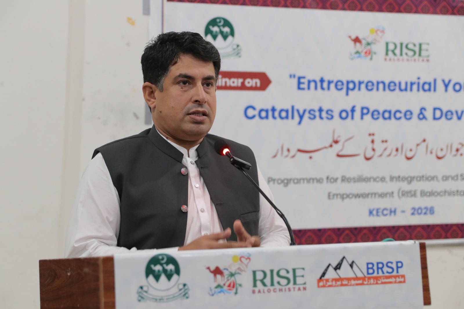 The seminar’s Chief Guest, Deputy Commissioner Kech Yasir Iqbal Dashti, highlighted that peace, social harmony, and economic development are interlinked factors, and youth serve as a strong bridge among them. He emphasized that without sustainable peace, business activities and development cannot progress at the desired pace. He further said that, under the policy guidance of the Chief Secretary, the Government of Balochistan will effectively implement the RISE Balochistan Program as a flagship initiative to create economic opportunities for youth, women, and underprivileged communities, and to lay the foundation of a peaceful and stable society.